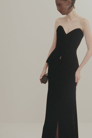 Velvet shaped into a tuxedo corset, opening at the front like a quiet gesture of confidence. Structured lines meet soft texture, creating a silhouette both strong and feminine.