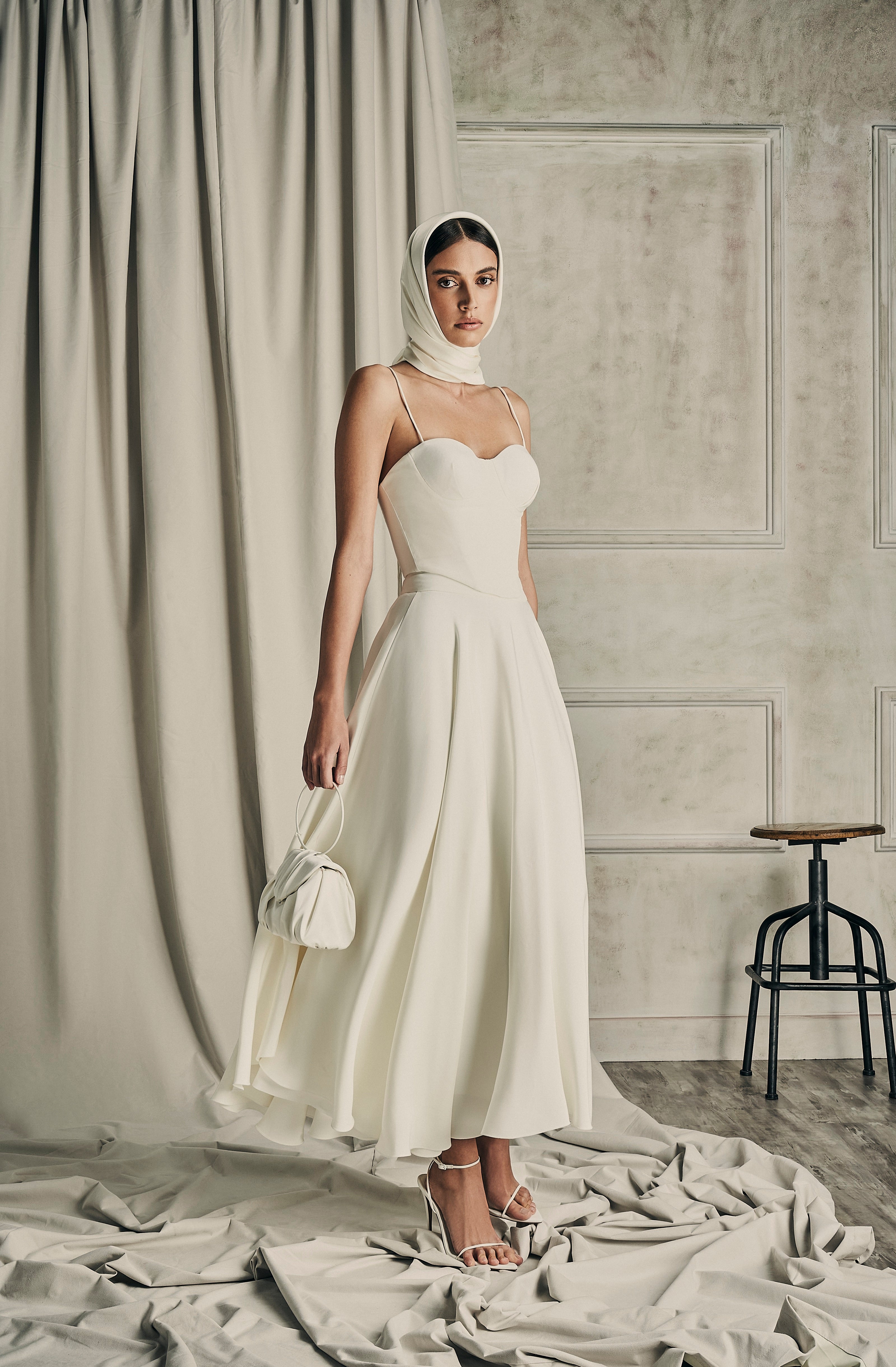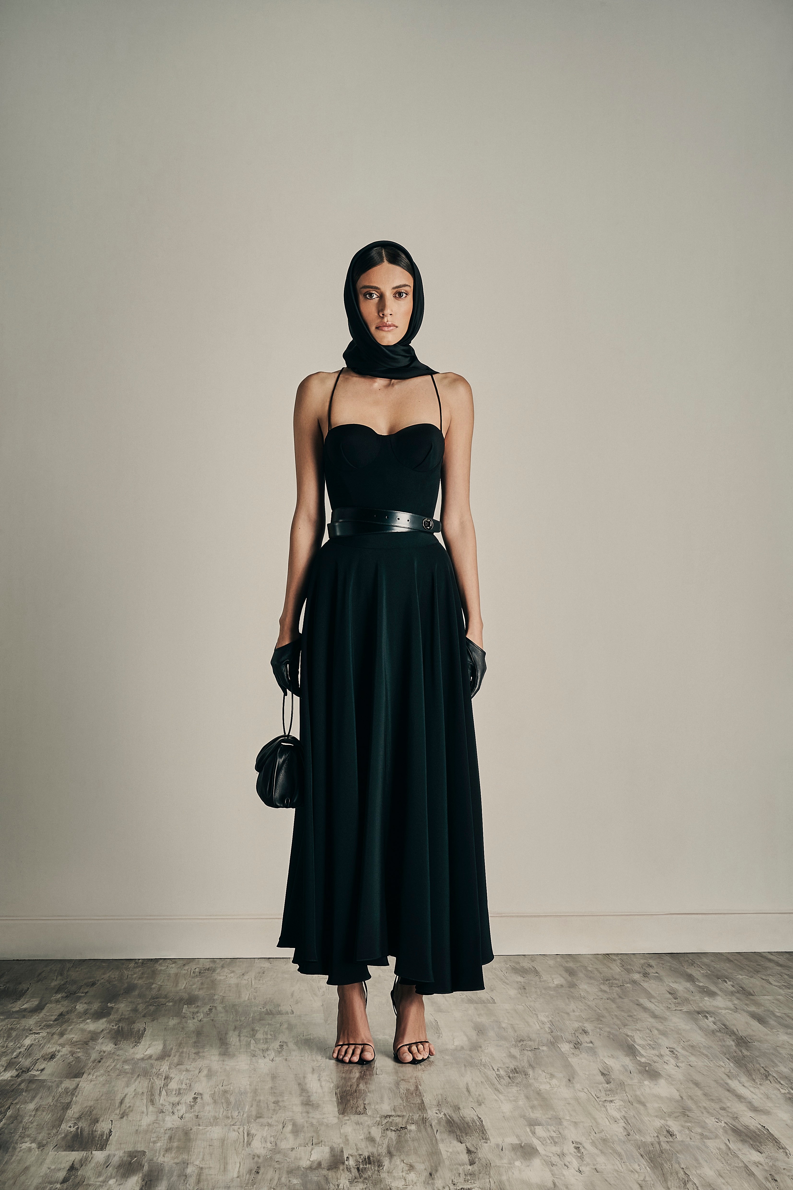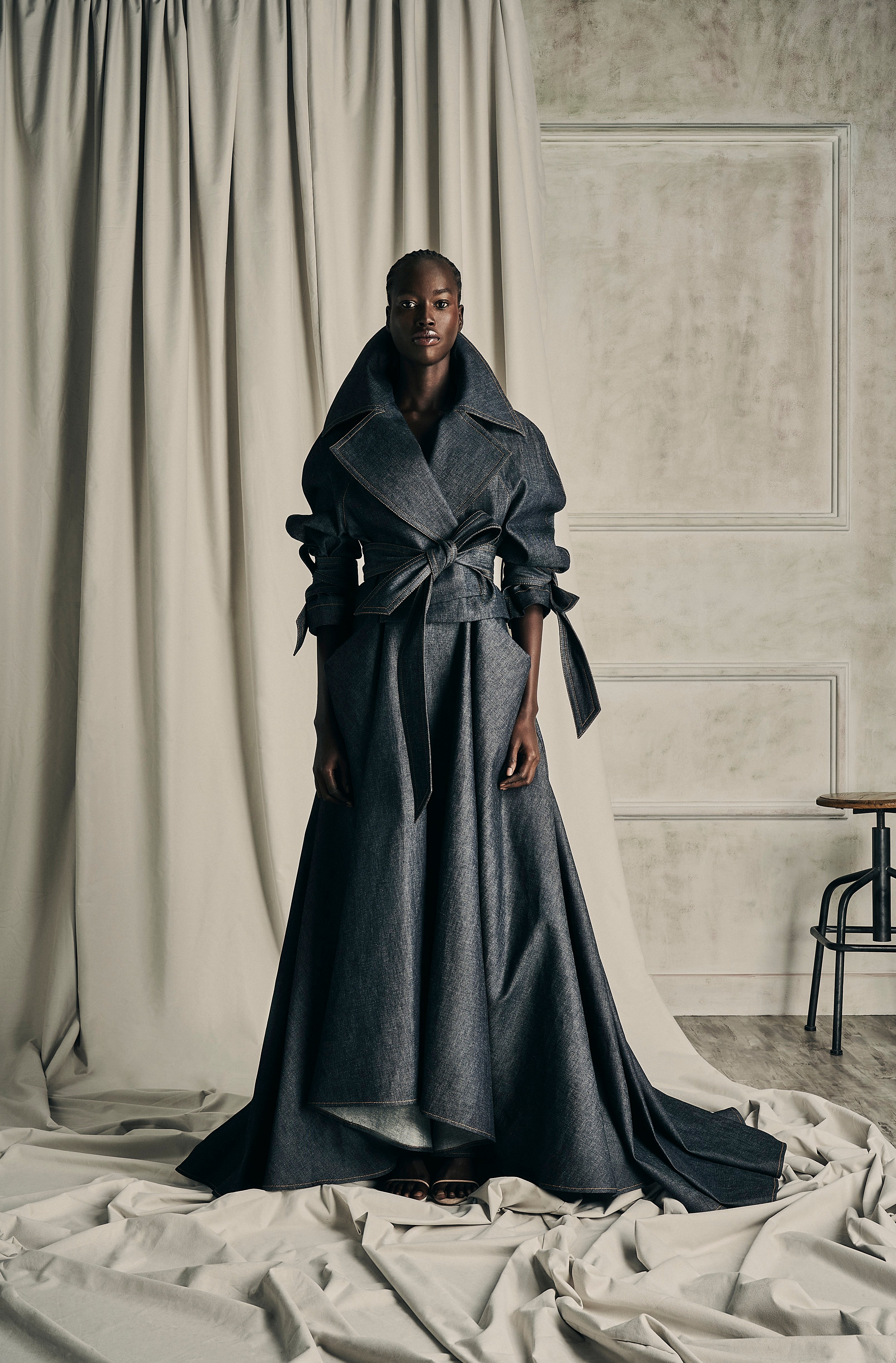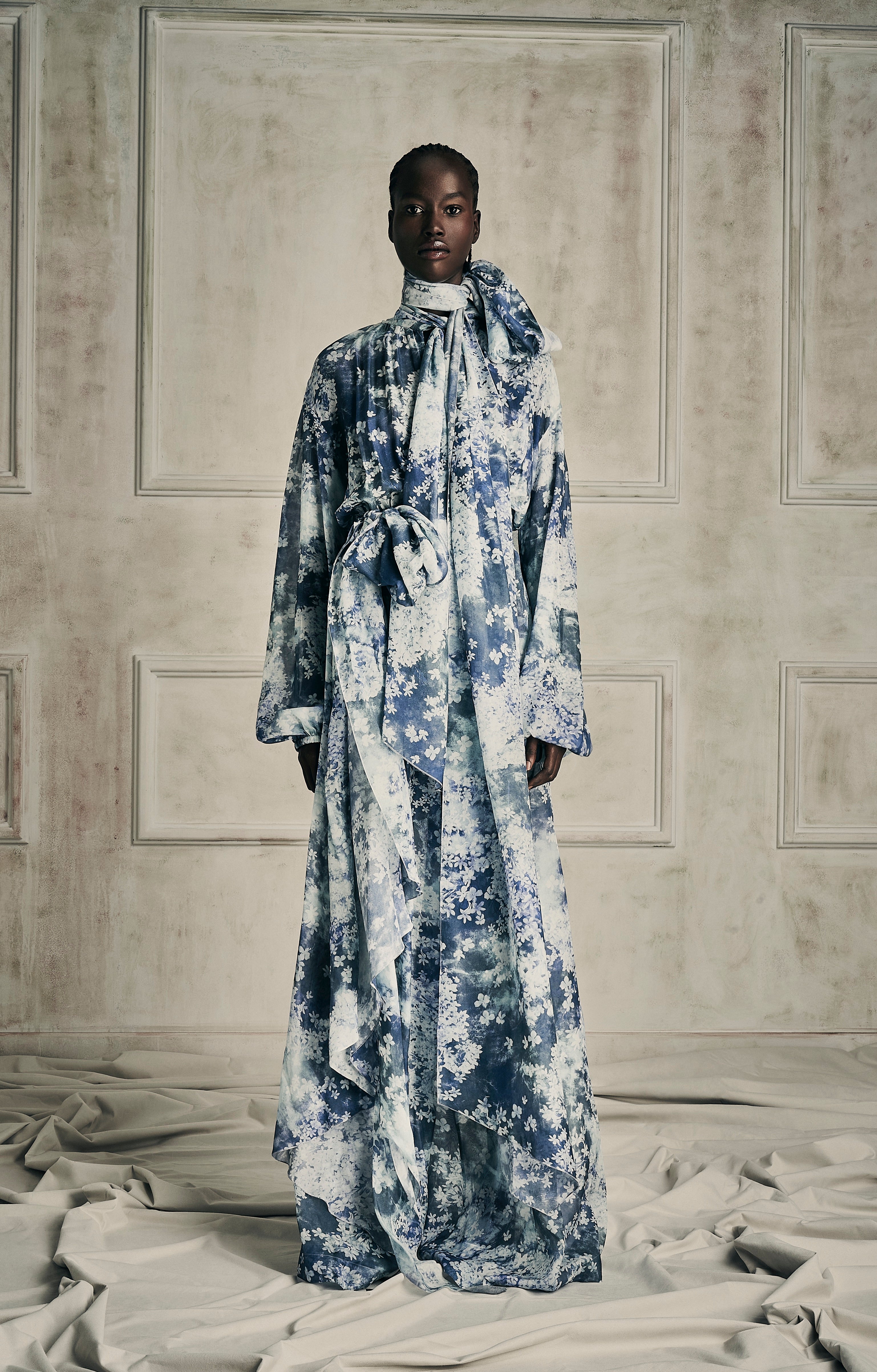 Exquisite assemblage of garments drawn into elongated and monochrome silhouettes paired with weightless and flowy movement. Her transparency as a soul created around the fabric, a soft narrative of dreams to discover the delicate enveloped femininity.