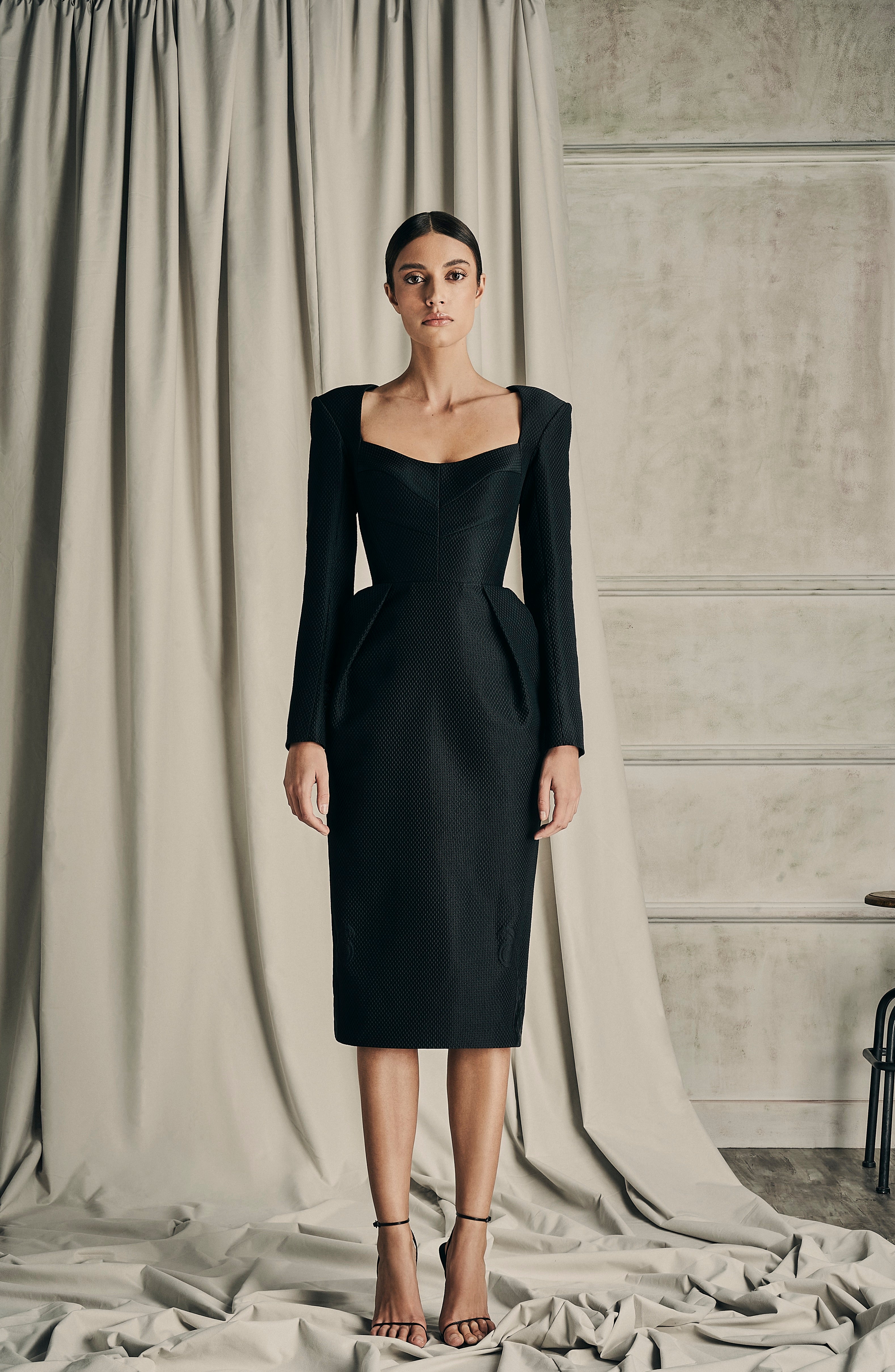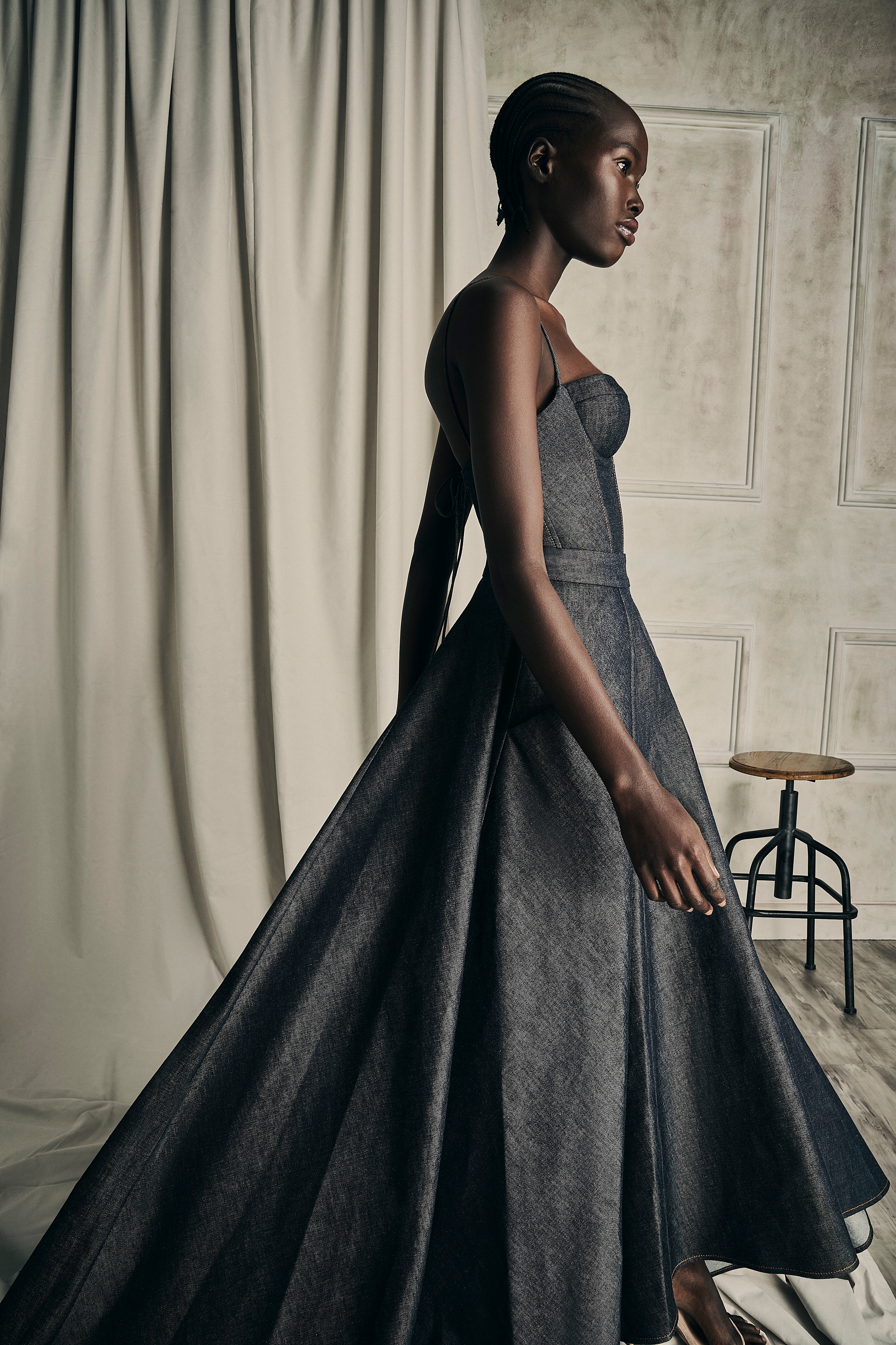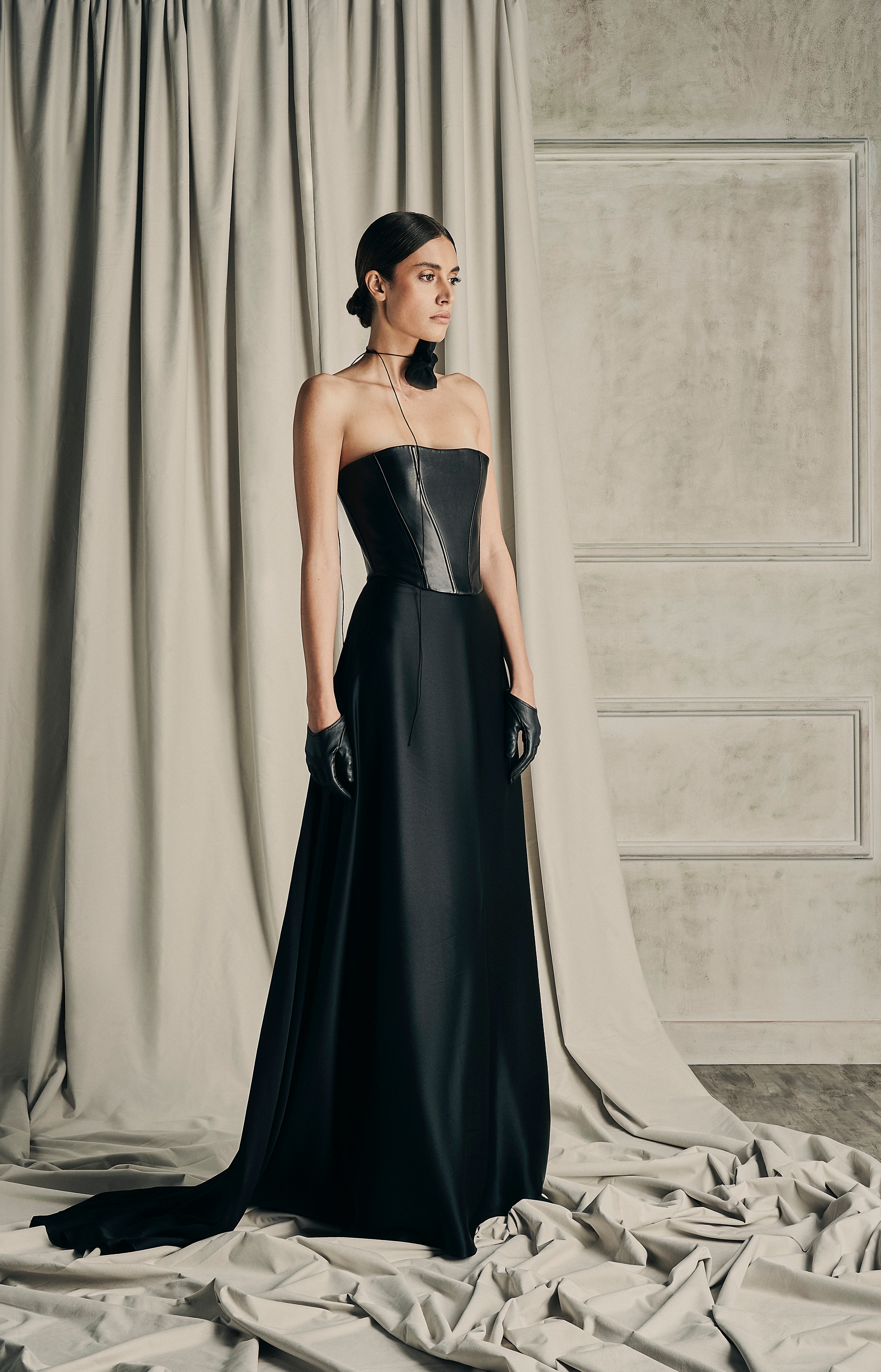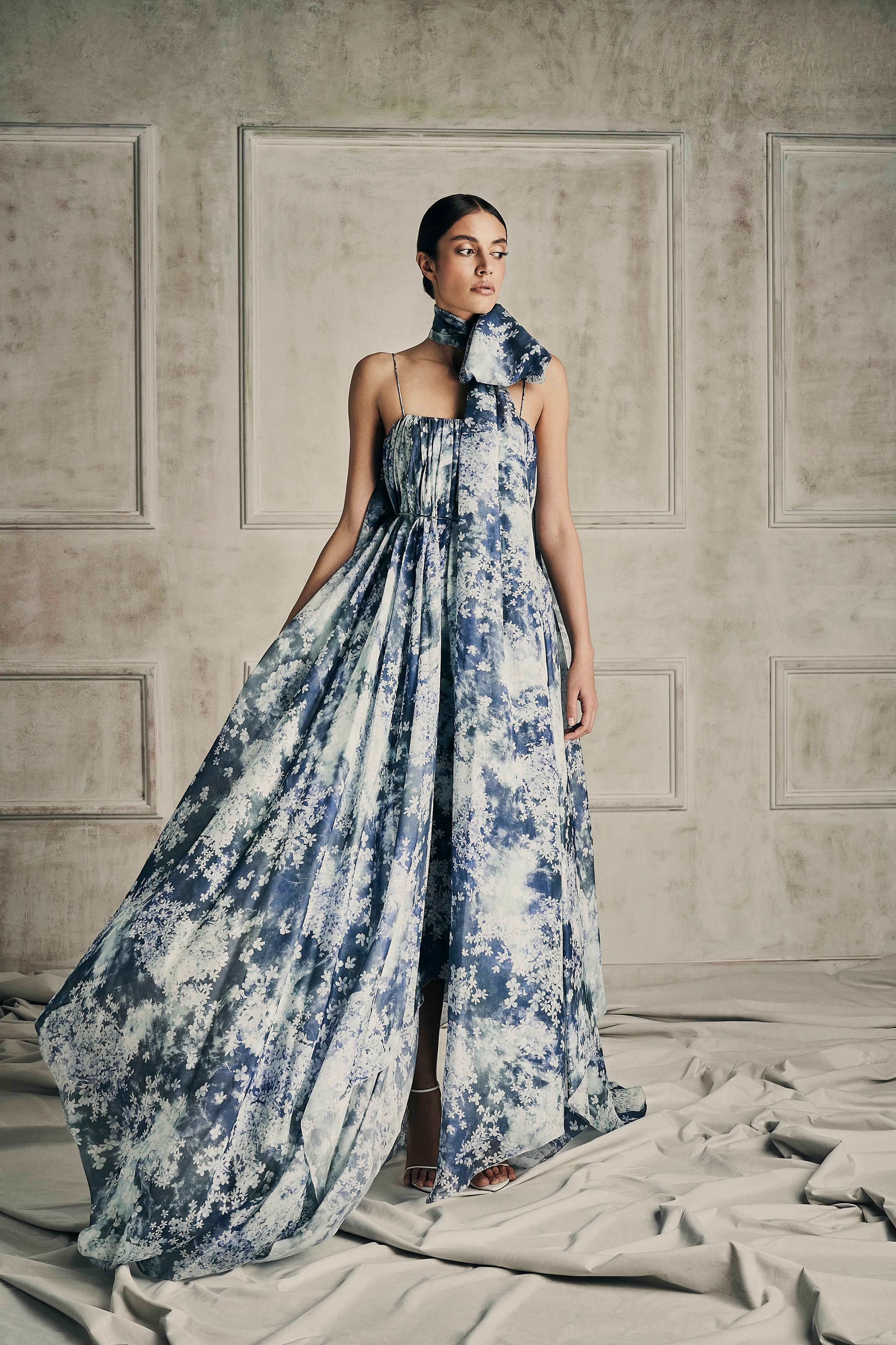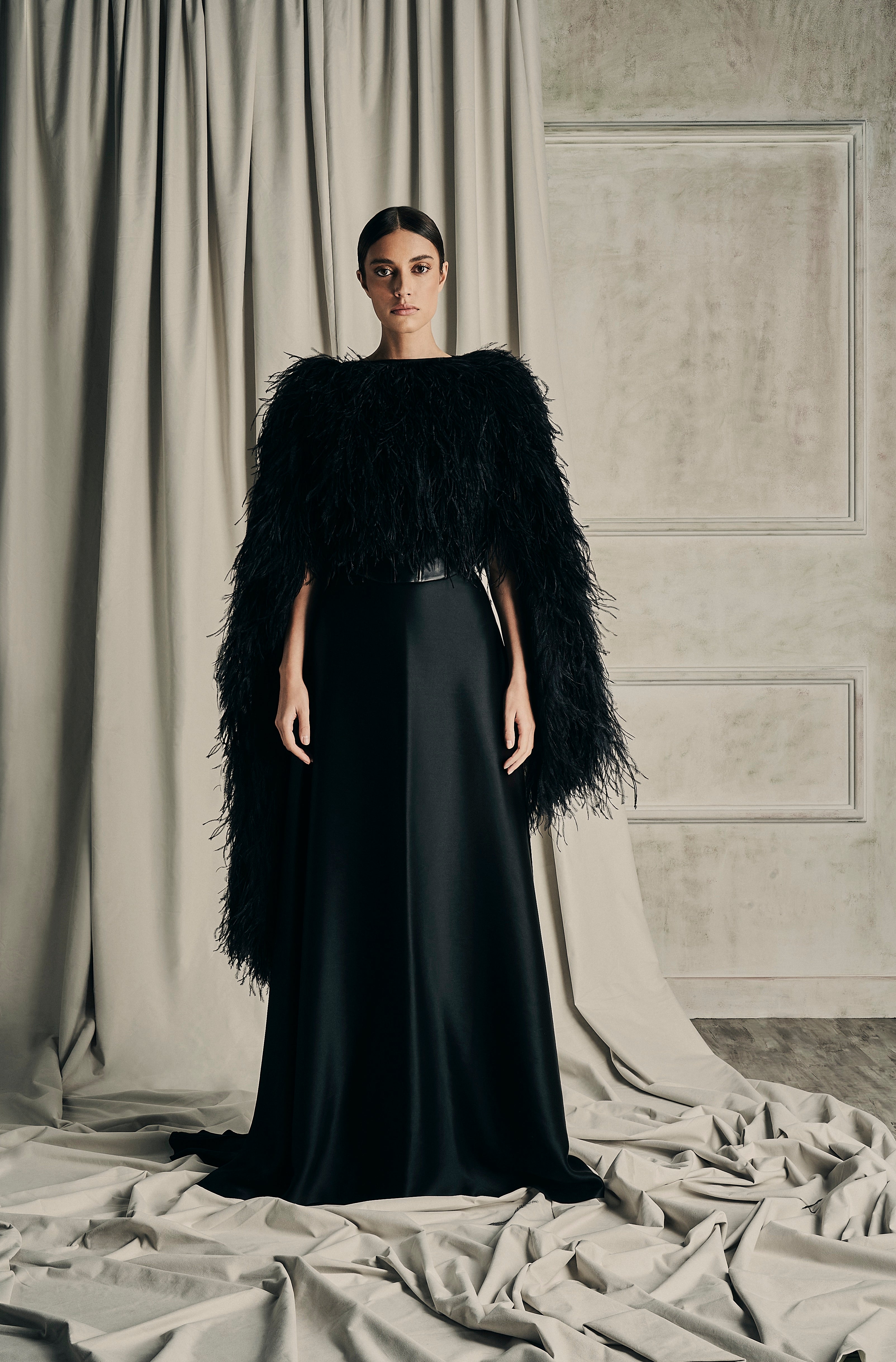 Her collection features the finest fabrics, from sumptuous silks to soft organza, ensuring that the experience unparalleled comfort and quality in our continuous evening line.
