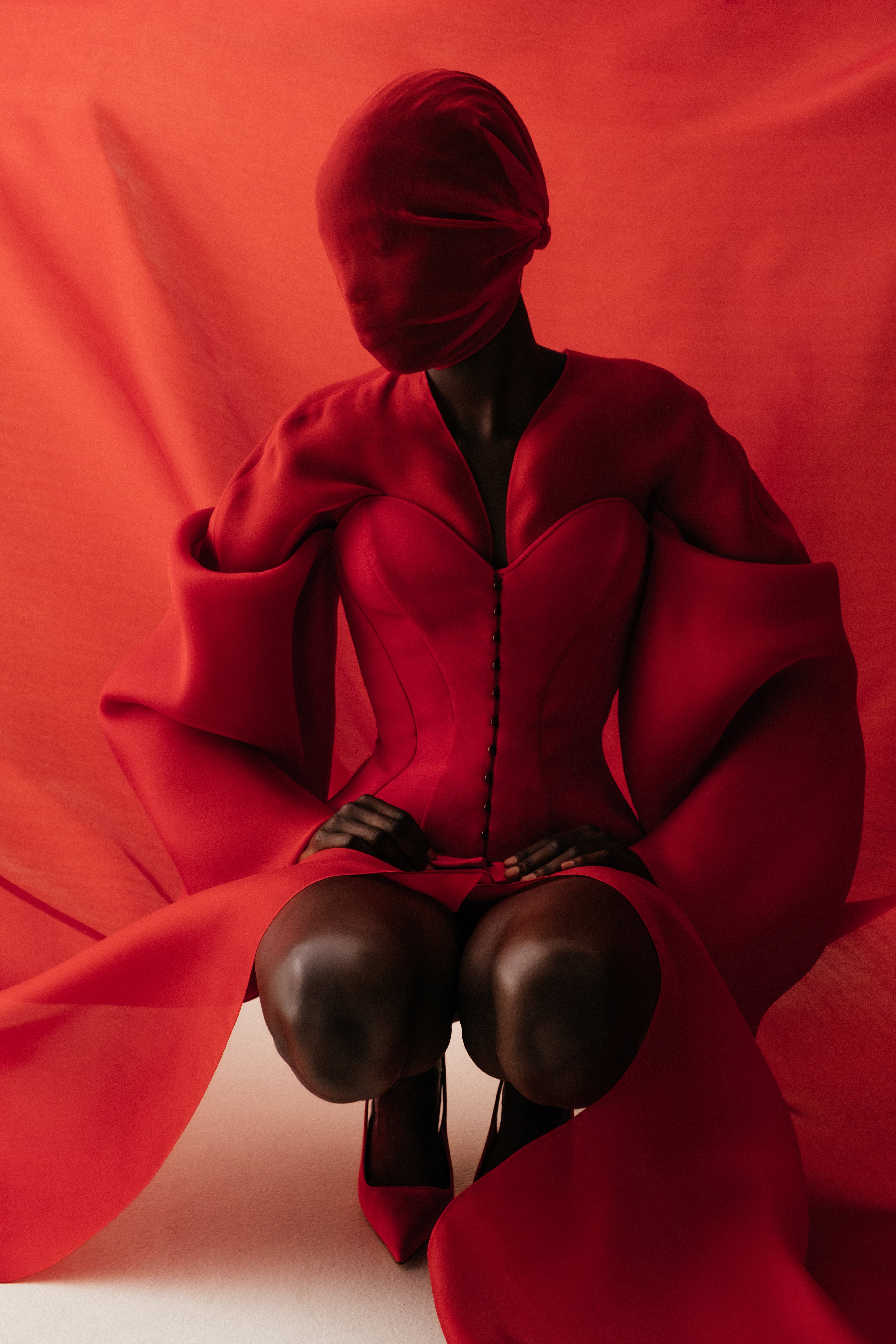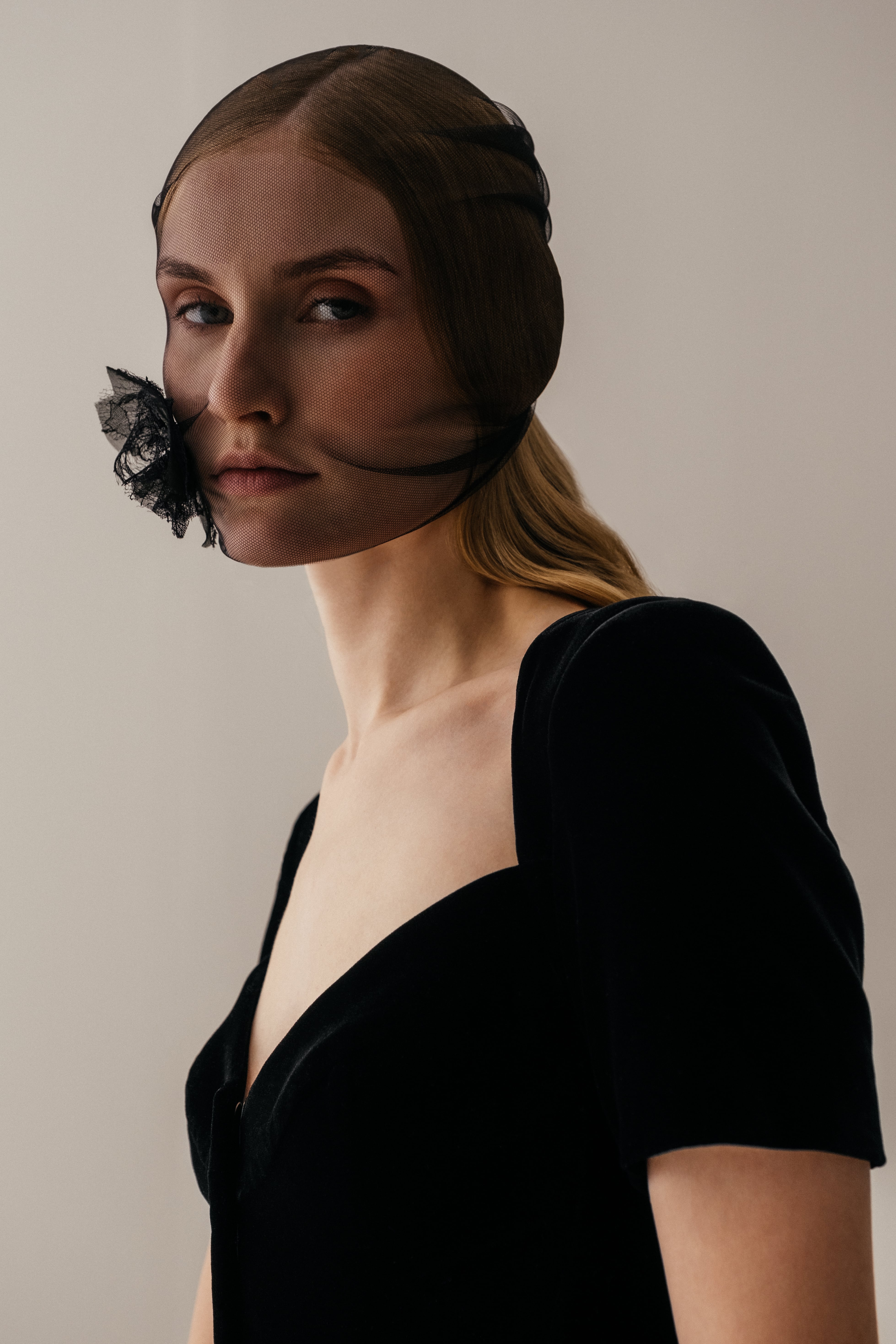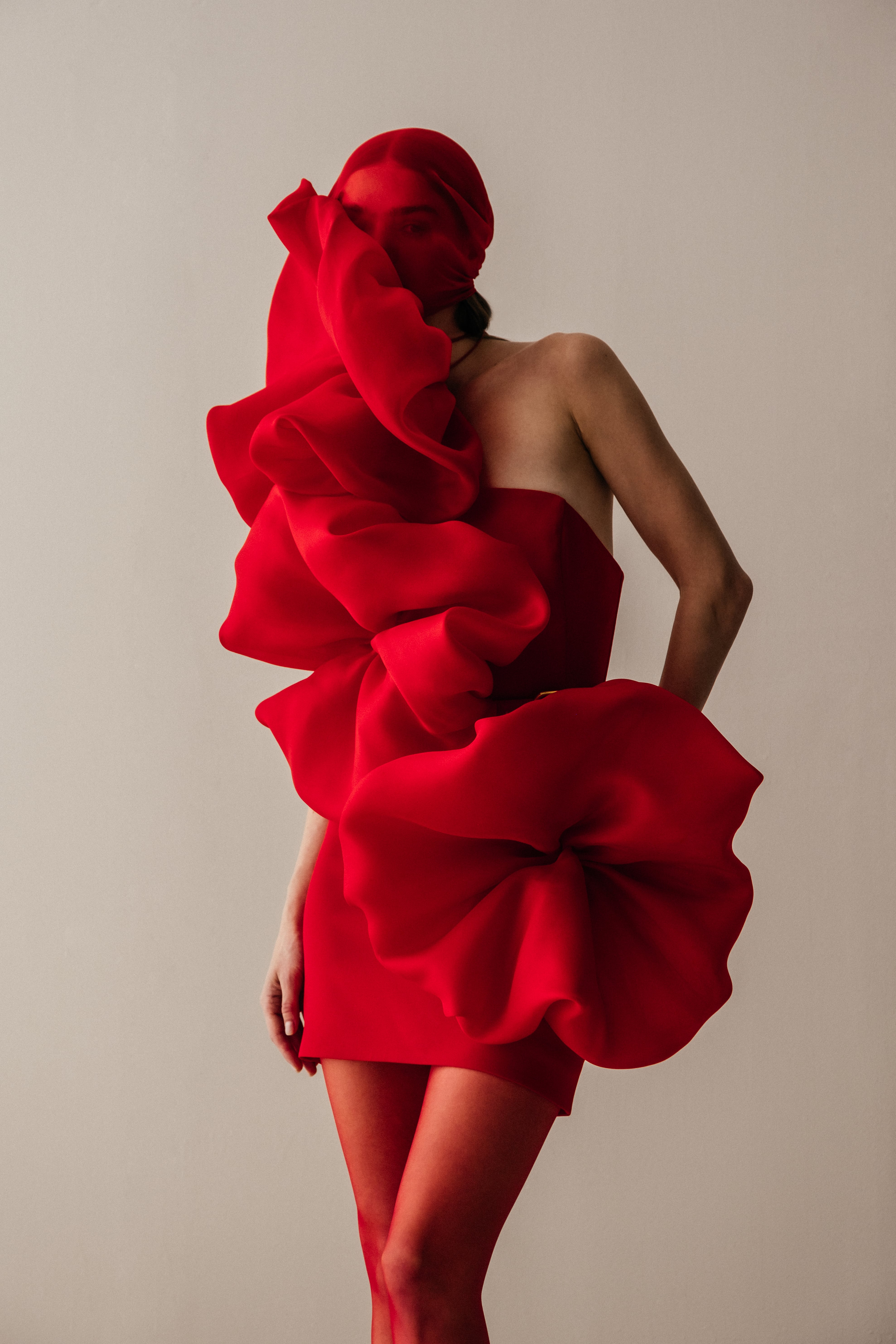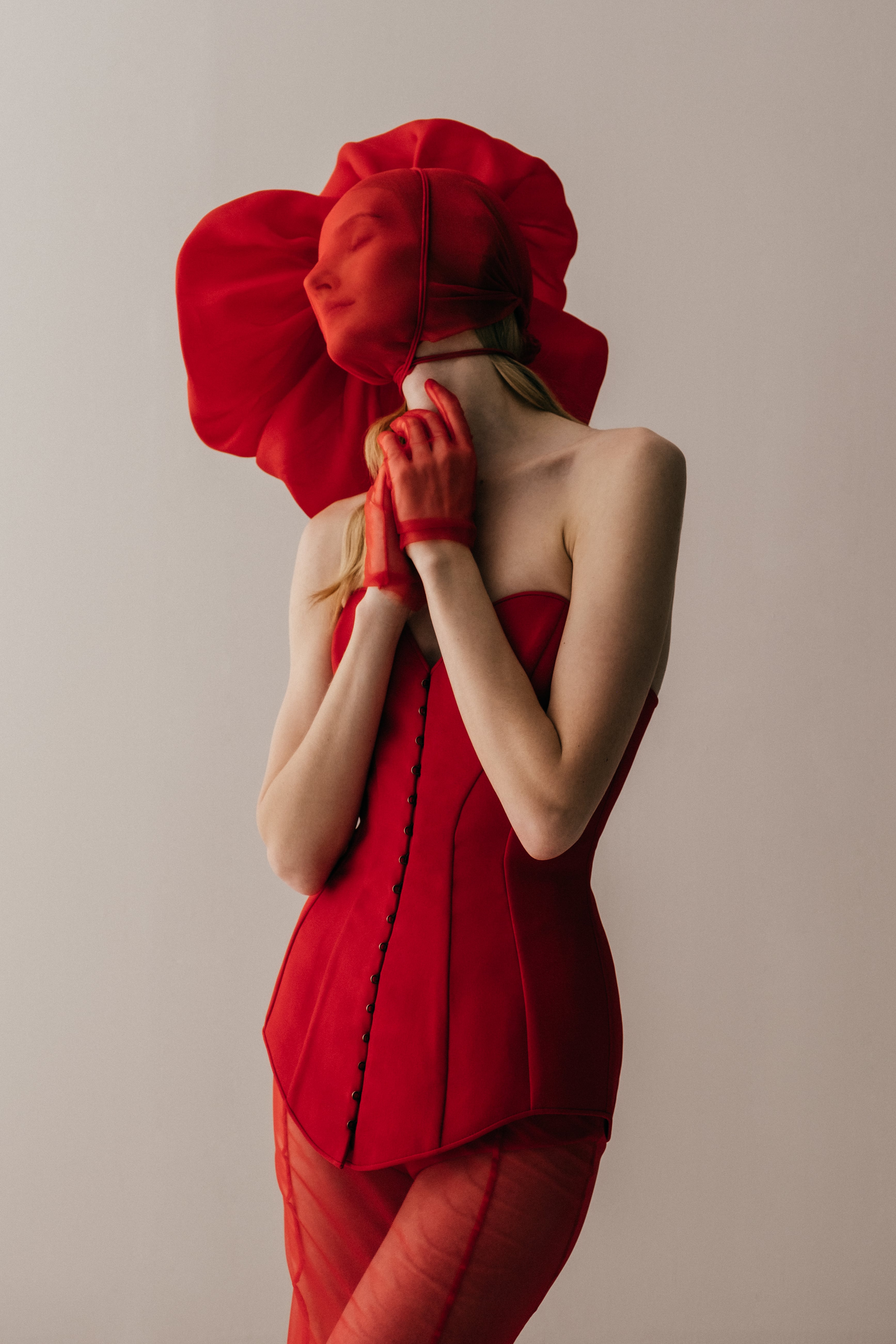 The calming yet powerful energy of the color palette manifests the essence and the complexity of a woman: black for the secret, red as the passion, the intimate nude and the shade of whites as the glimpse of hope in the shadow.