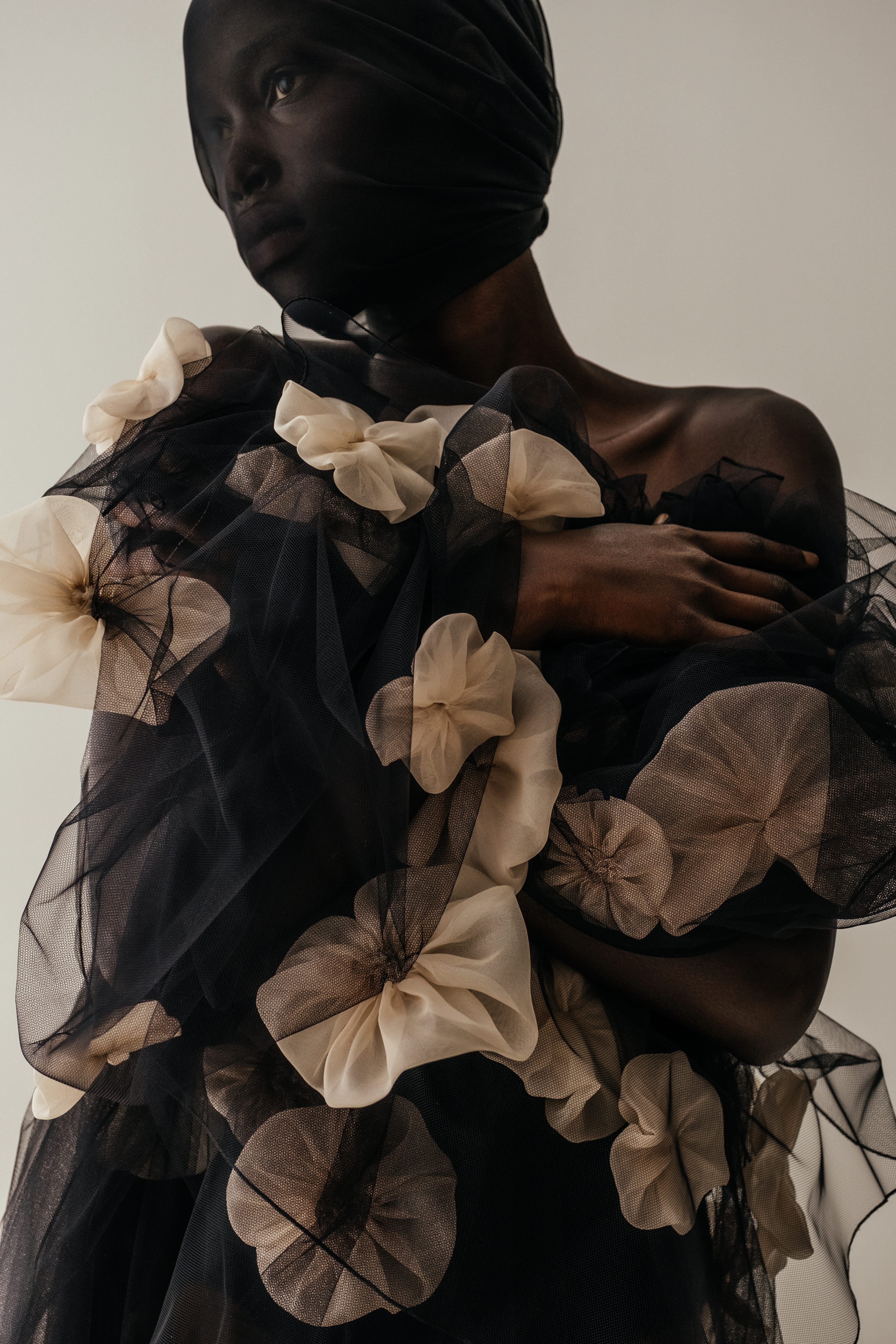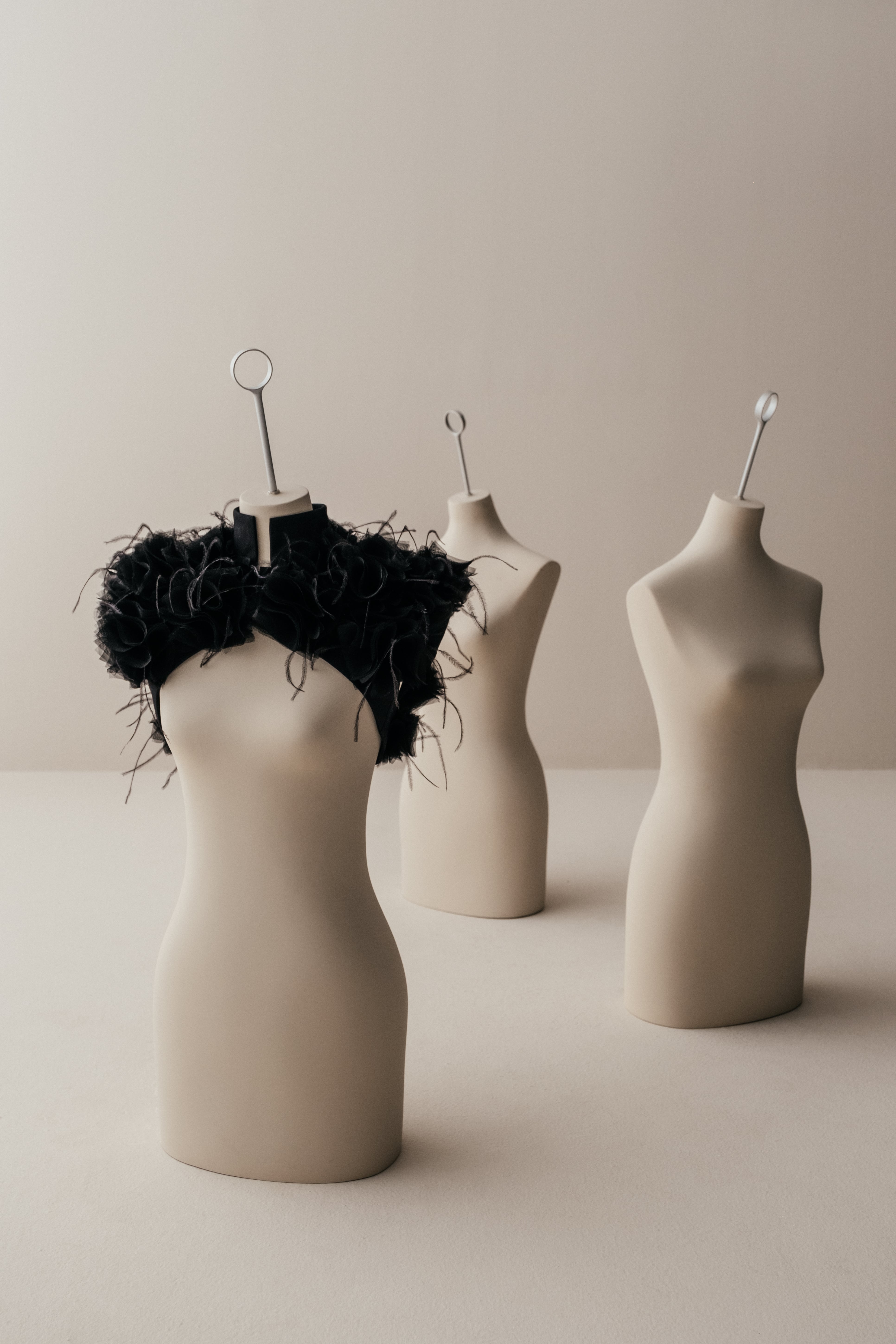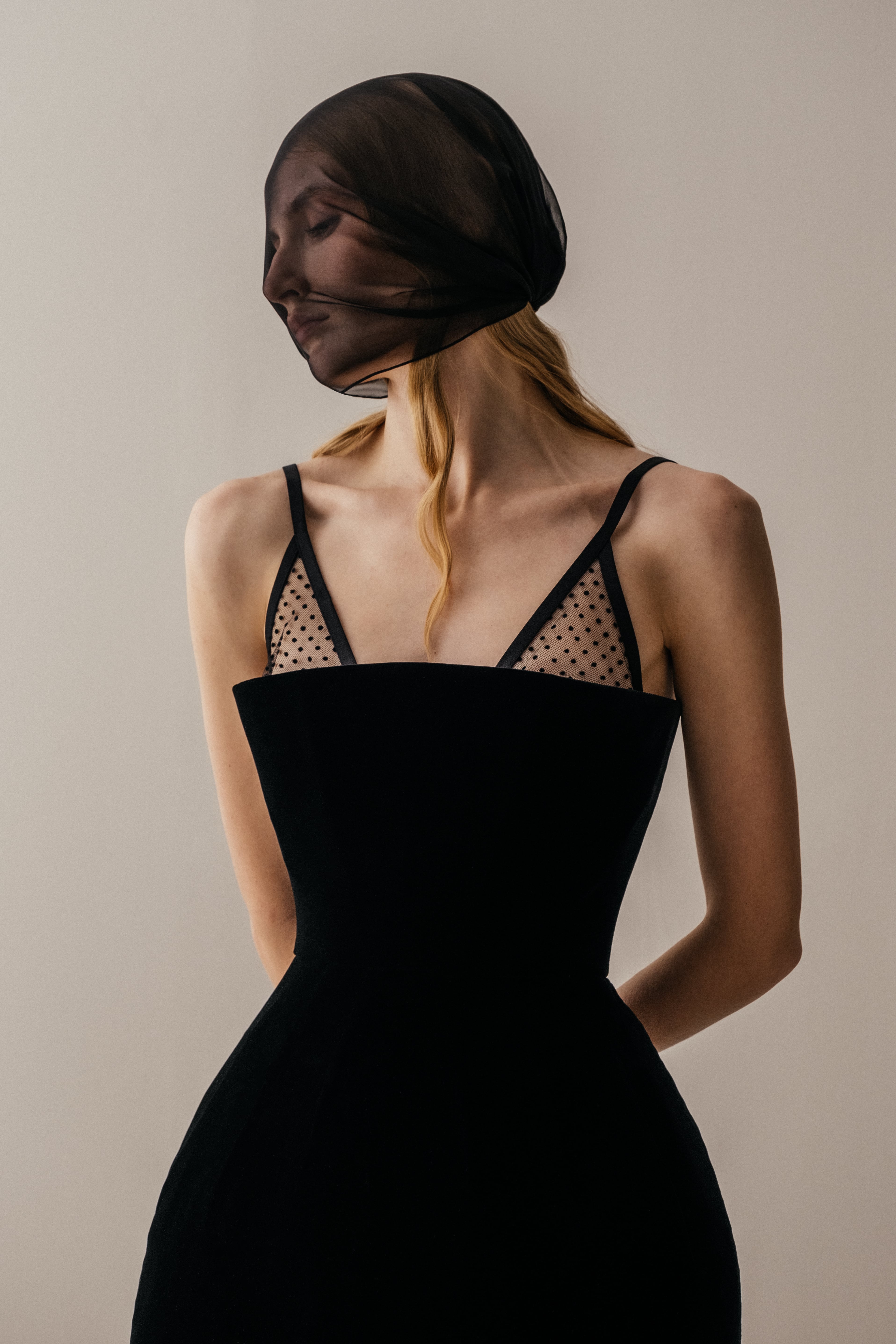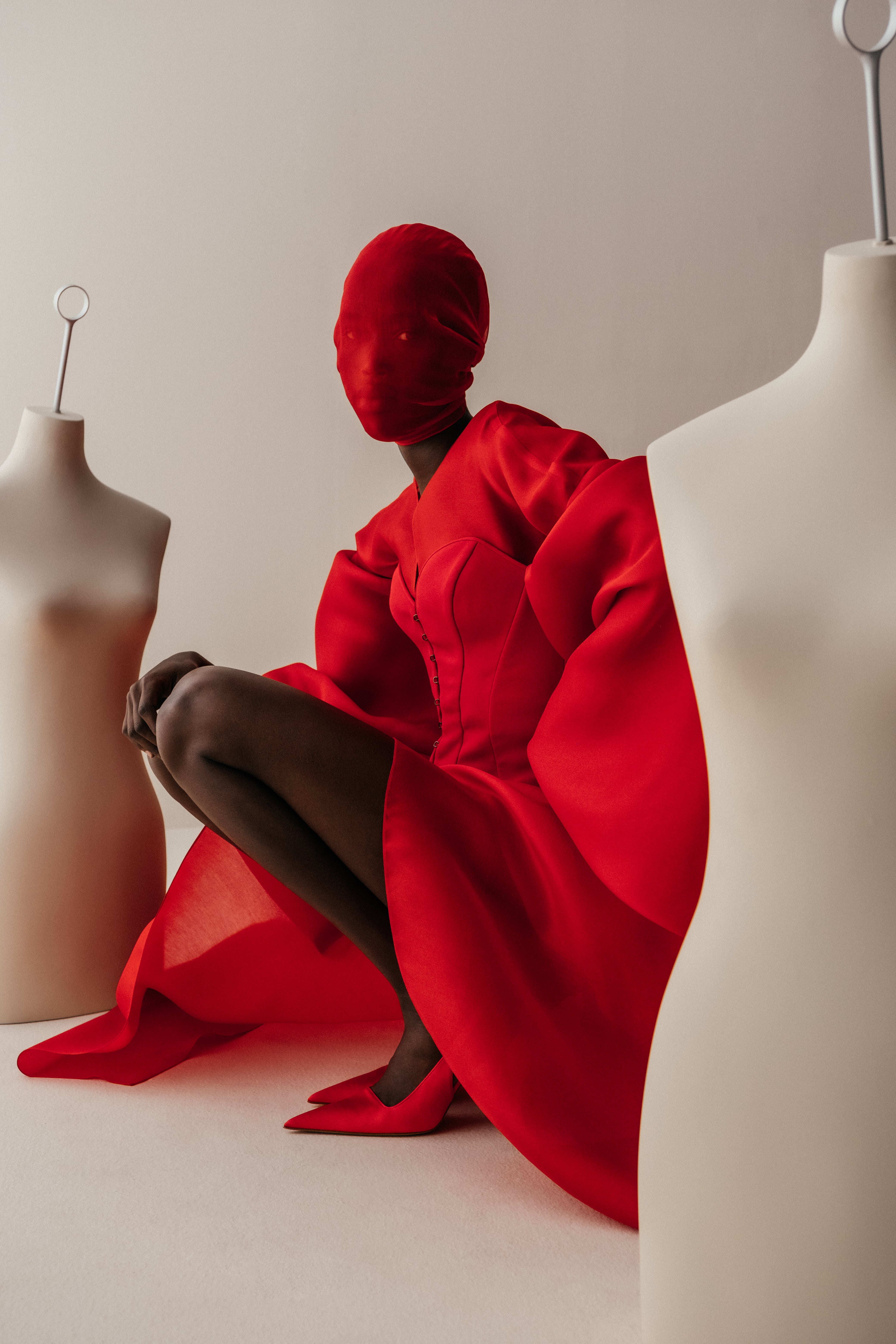 The calming yet powerful energy of the color palette manifests the essence and the complexity of a woman: black for the secret, red as the passion, the intimate nude and the shade of whites as the glimpse of hope in the shadow.
