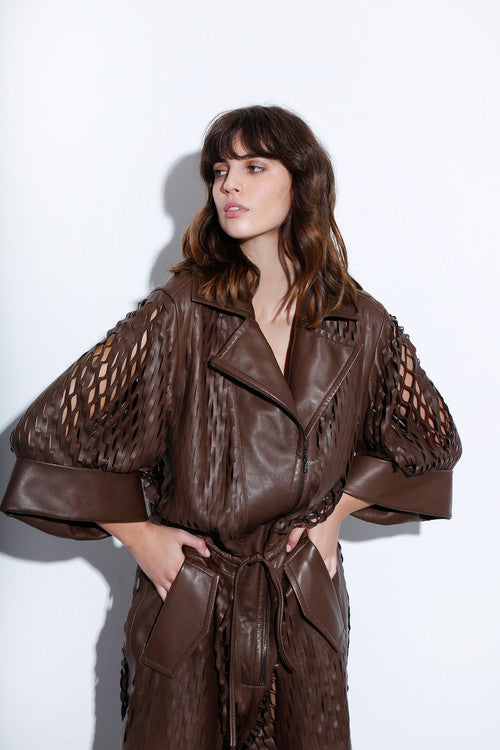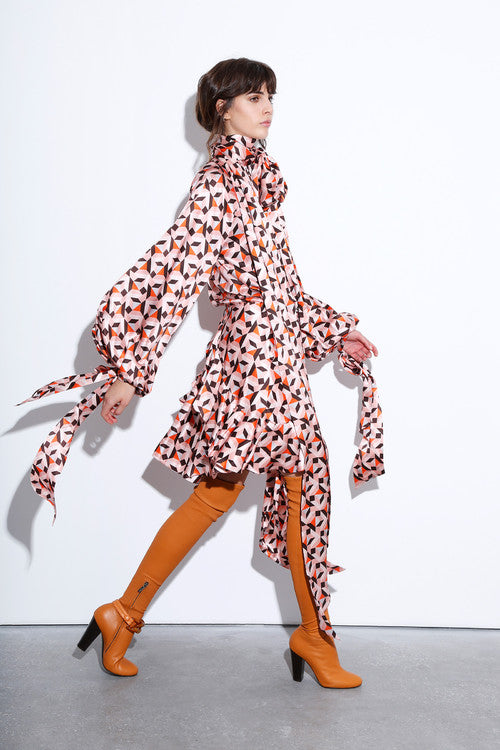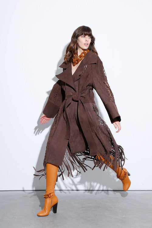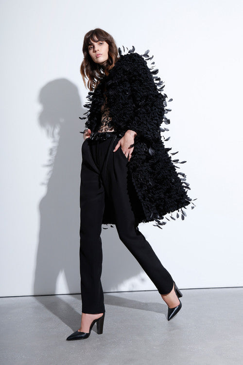 This season’s collection of new summer clothing and spring styles is composed of a variety of daring and romantically untamed looks, comprised of the brand's signature intricate hand-cut leather, kaleidoscopic seventies print, delicate embroidered floral tulle, antenna cockerel feather chubbies, accentuated by modernist perplex chain belts, necklaces, and anklets – a unique combination of bespoke couture silhouettes worked into contemporary sportswear.