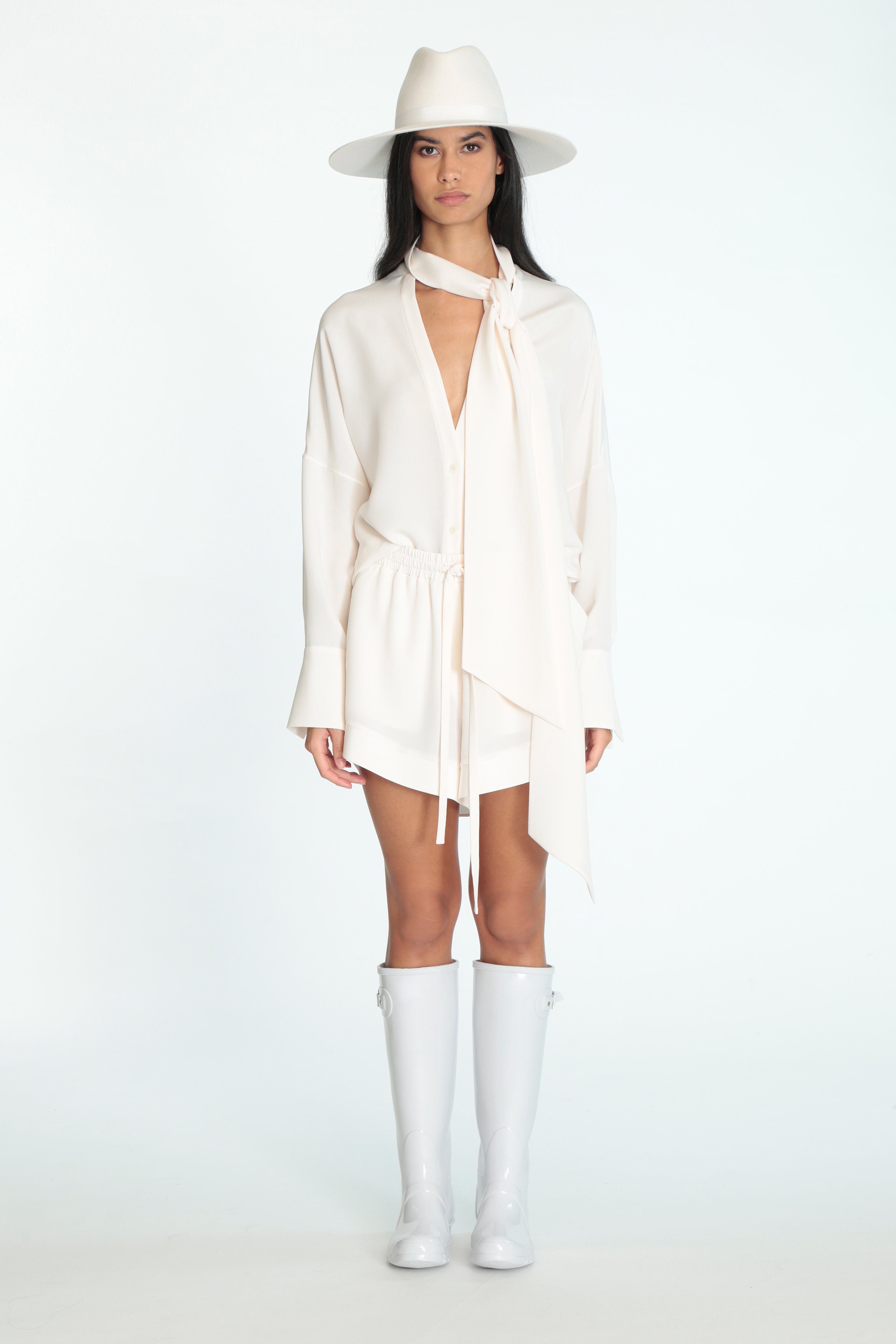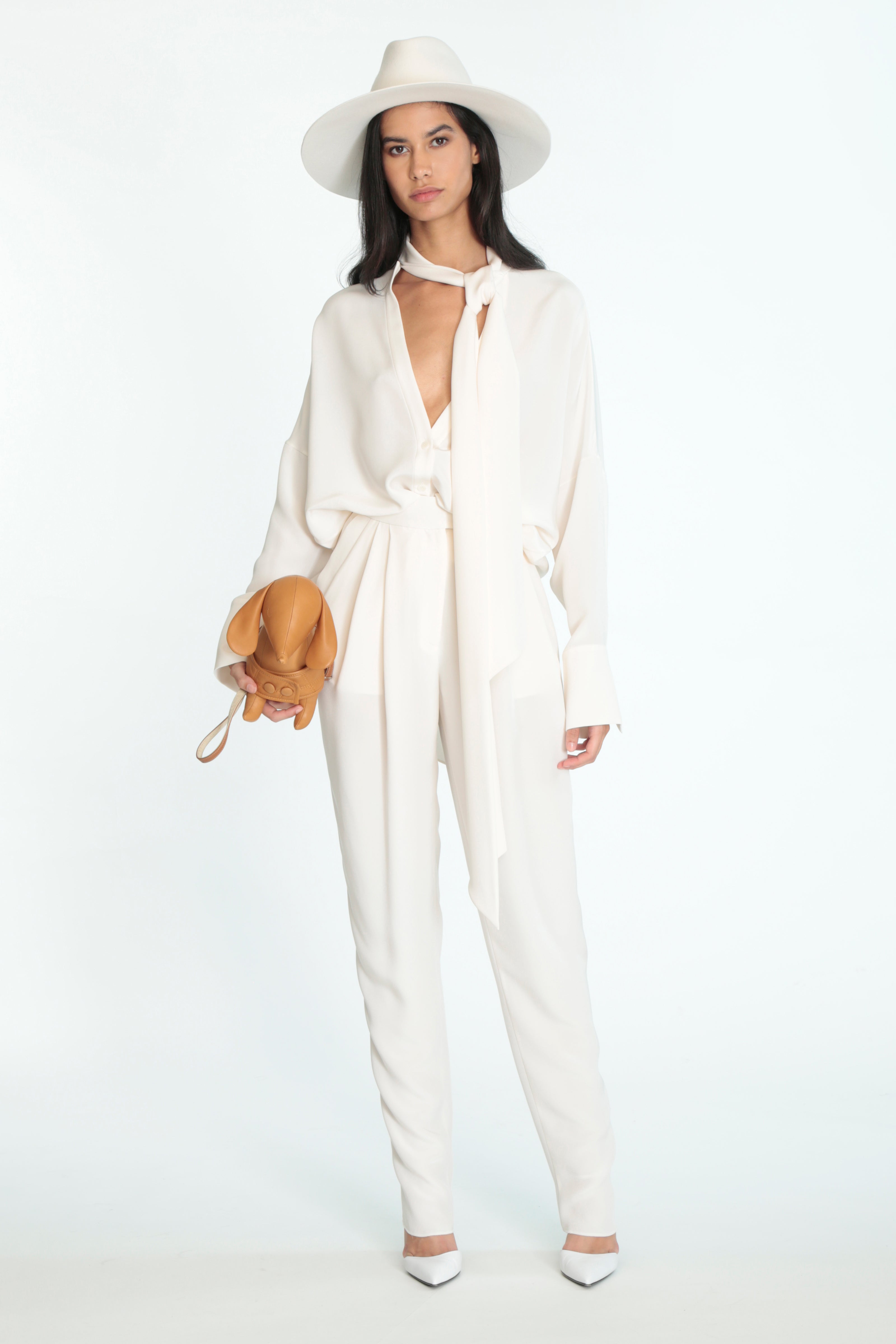 Featuring reimagined trench coats, tie-neck blouses, layered dresses, wide-leg trousers jumpsuits and elegant swimwear. The collection mixes compositions of soft-spoken silks, retro-inspired quilted leathers and flowing feminine silhouettes to see you from one occasion to the next.